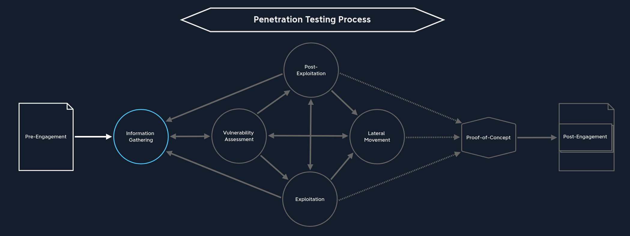 舉例來說,「橫向移動」與「資訊蒐集」是成為一名優秀滲透測試員的關鍵技能。我們不會針對這兩個階段單獨開設模組,因為它們在本質上是需要反覆實踐的流程,在滲透測試過程中會多次用到。我們將重點放在介紹橫向移動的戰術、技巧與流程,並提供多樣化的情境,讓大家實踐自己優異的資訊蒐集與後滲透利用(post-exploitation)的技巧。
