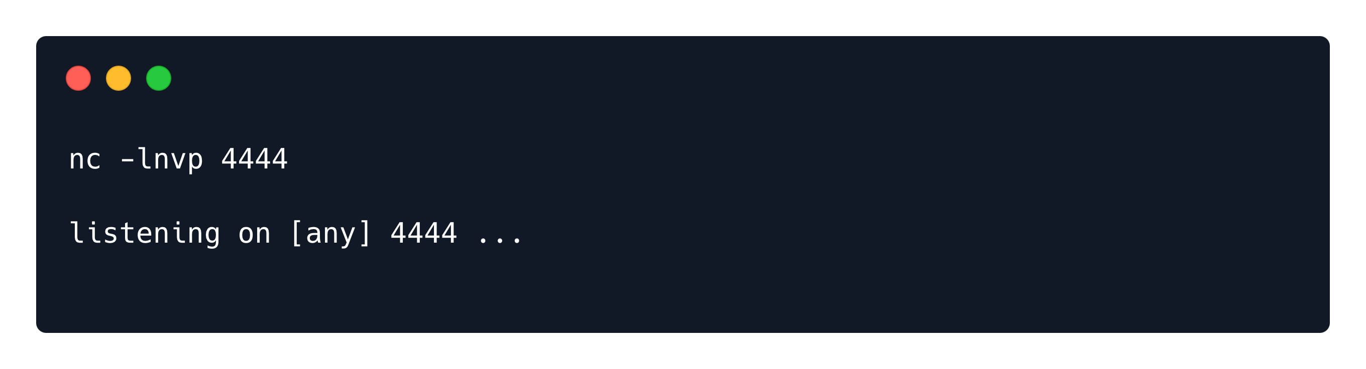 我們將使用以下命令啟動一個 Netcat 監聽器,一旦我們的腳本執行完畢,我們將使用該監聽器與我們的反向 shell 連線進行互動。